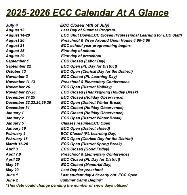 ECC Calendar at a Glance